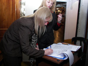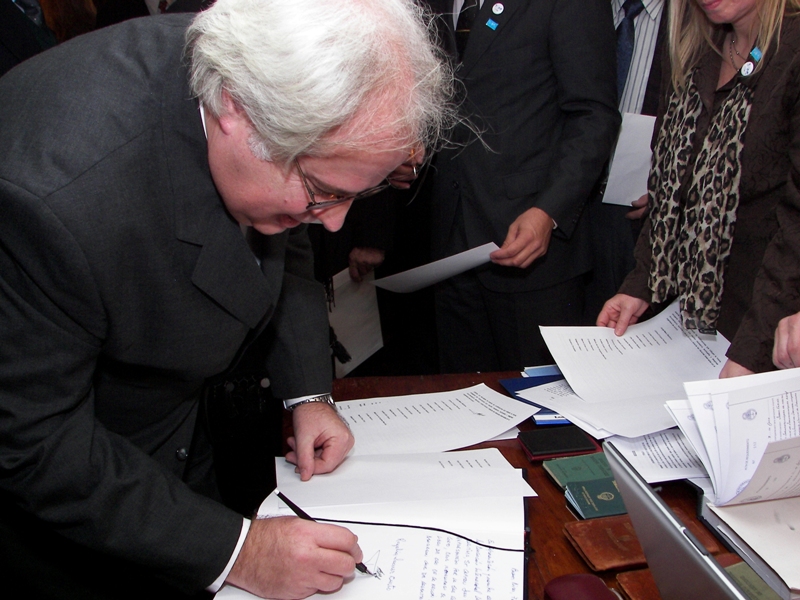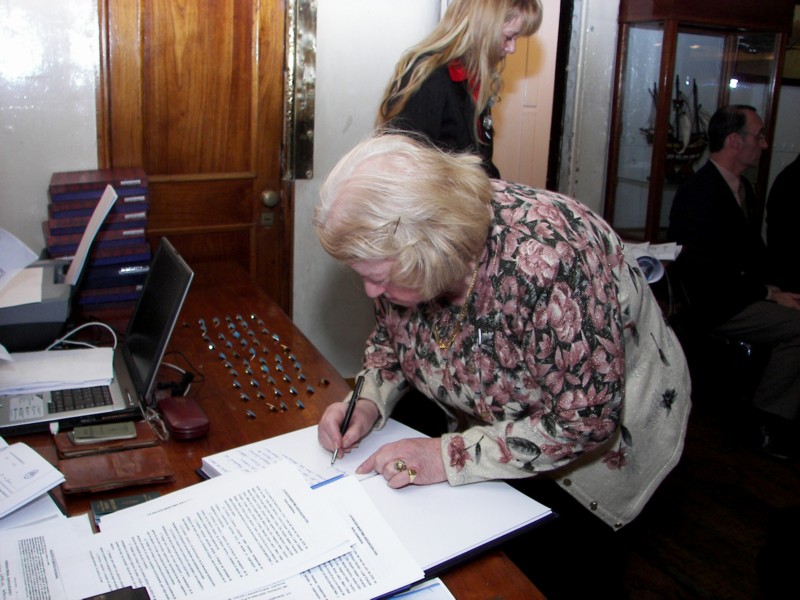 Se inaugura el Libro de Oro de LA NACIÓN MARÍTIMA, invitando a firmar en nombre del Presidente de la Asociación Internacional LA NACIÓN MARÍTIMA, Sr. Capitán Juan Nicolau CASANY, a la Sra. Rogelia SUÁREZ CURTO. |