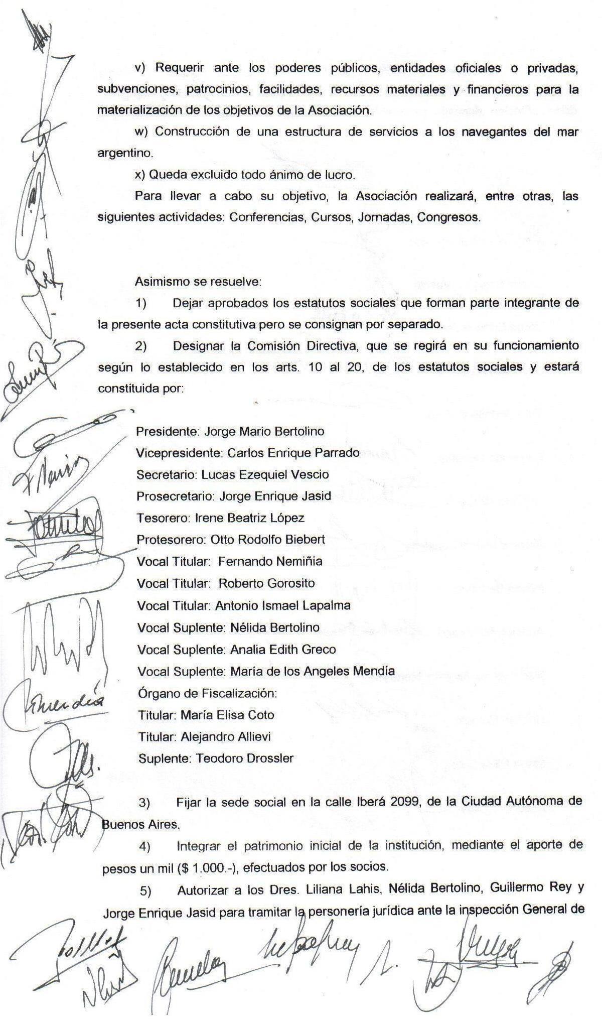 Luego el Presidente de LNM Sr. Jorge Mario Bertolino, dio por formalmente constituida a LA NACIÓN MARÍTIMA Asociación Civil.