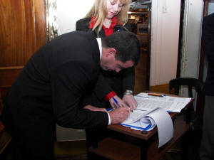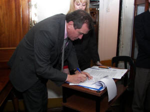La Maestra de Ceremonias Licenciada RRPP María de los Ángeles MENDÍA, presenta al Sr. Escribano Leonardo M. SCHESTENGER, quien procedió a dar lectura al Acta Constitutiva. |
